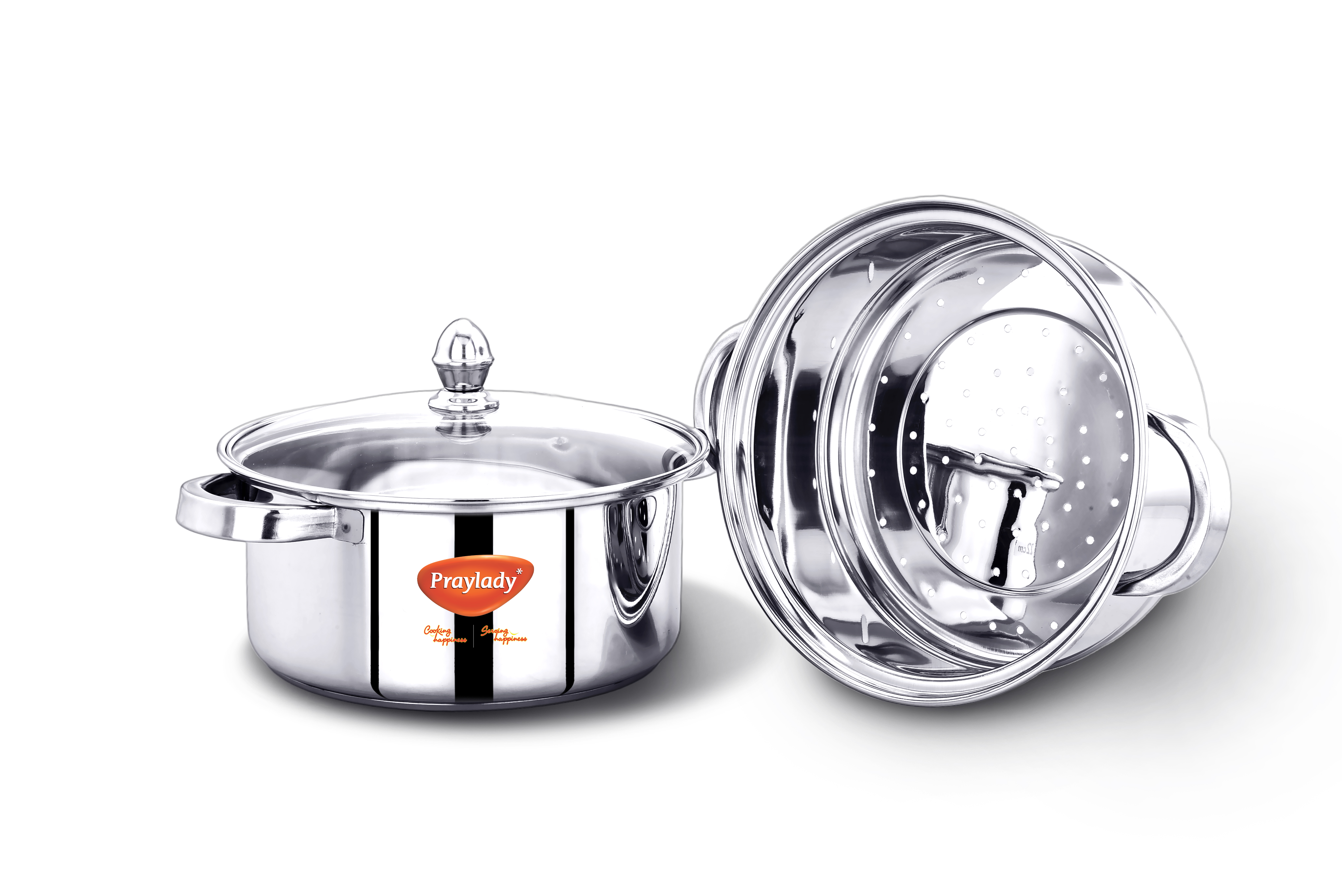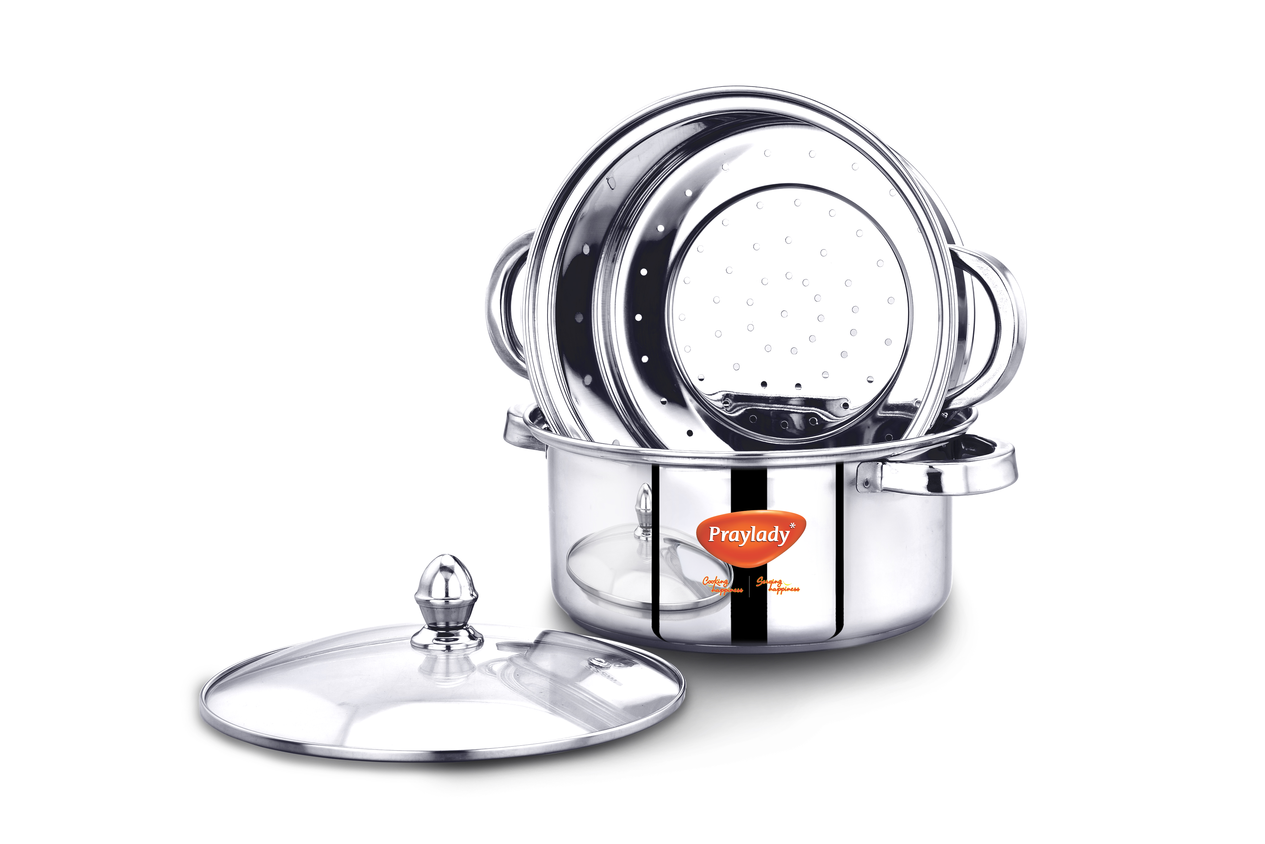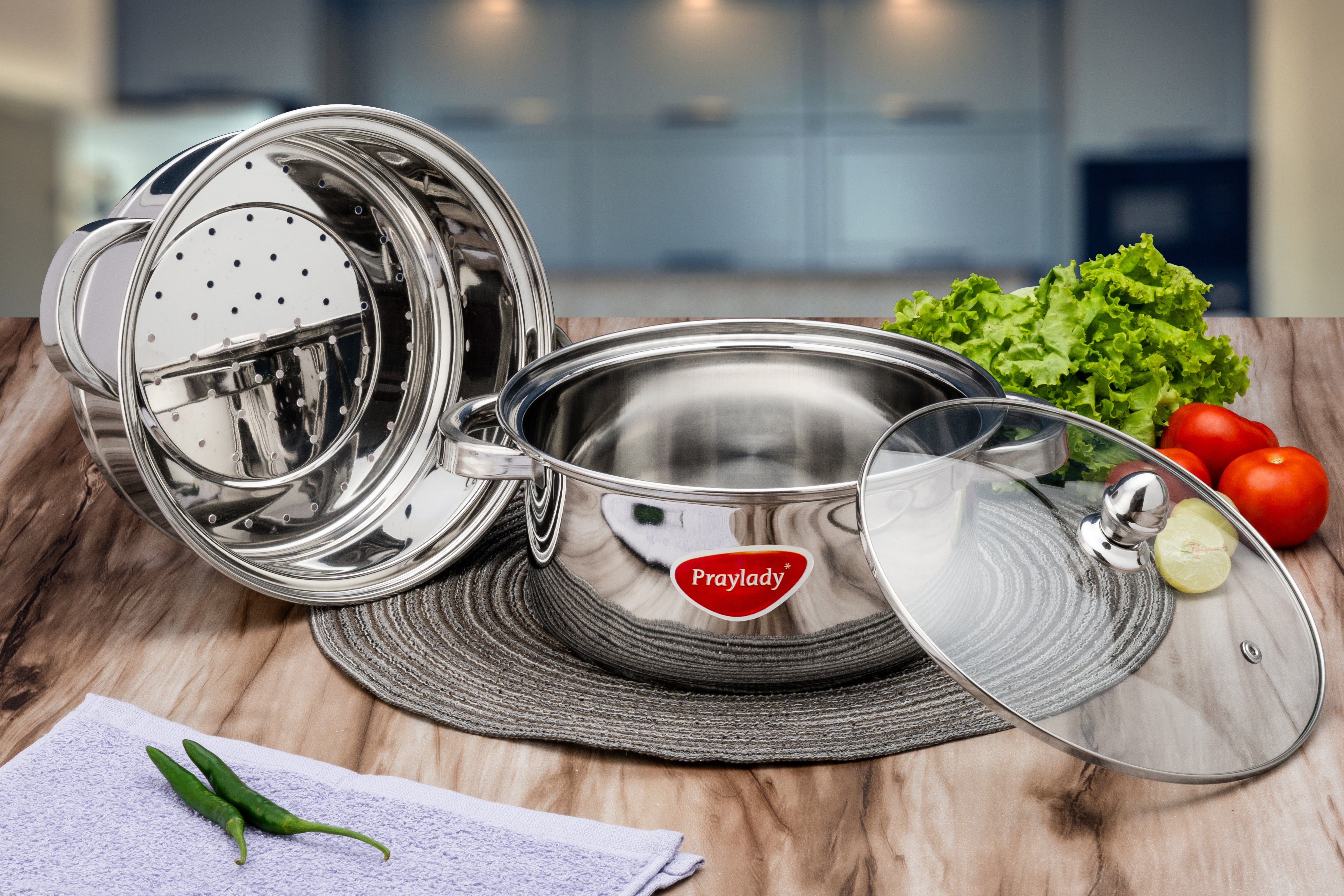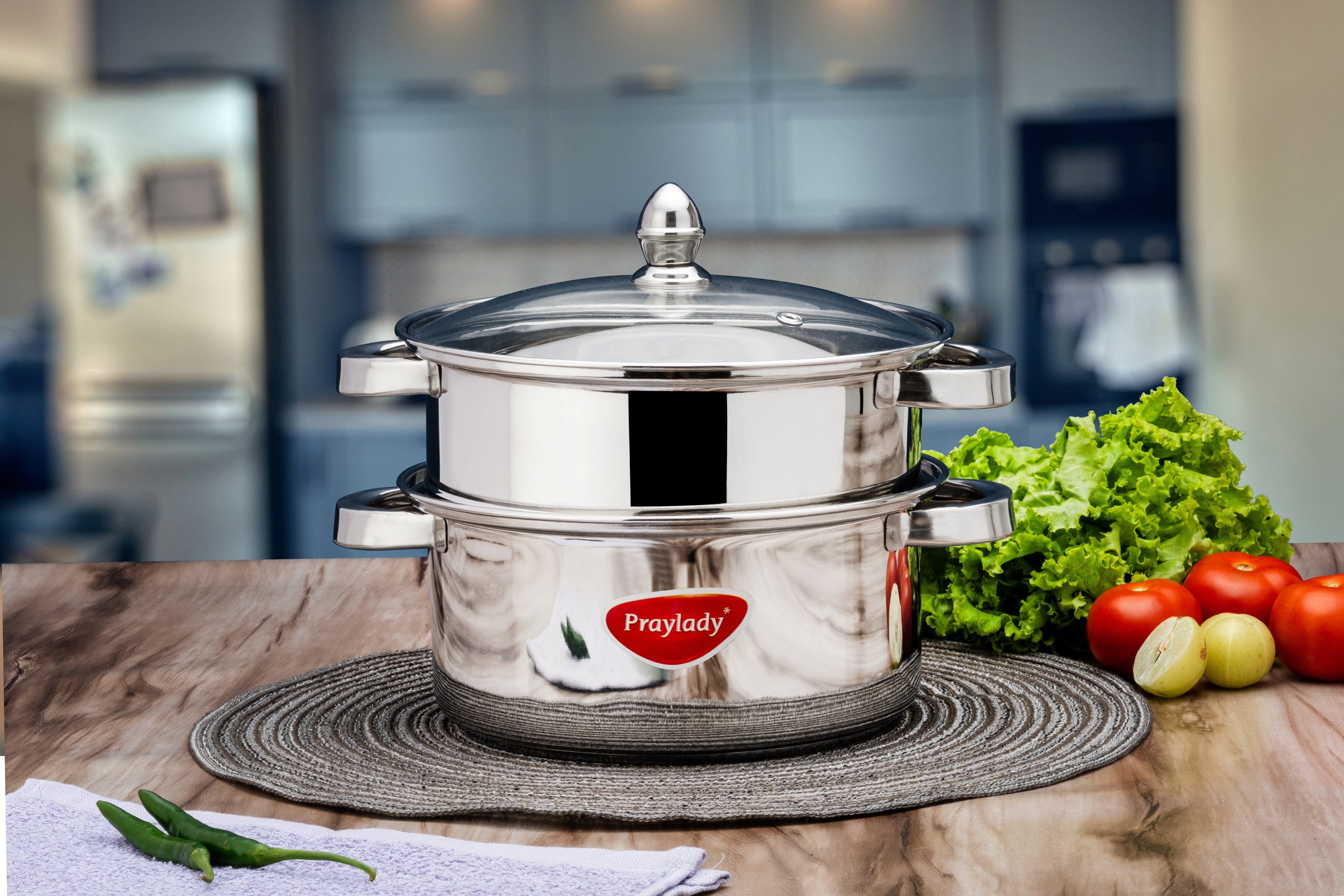 PrayLady 3-Ply Stainless Steel Steamer Pot β Healthy Steaming, 2-Tier (2 L to 3.8 L)