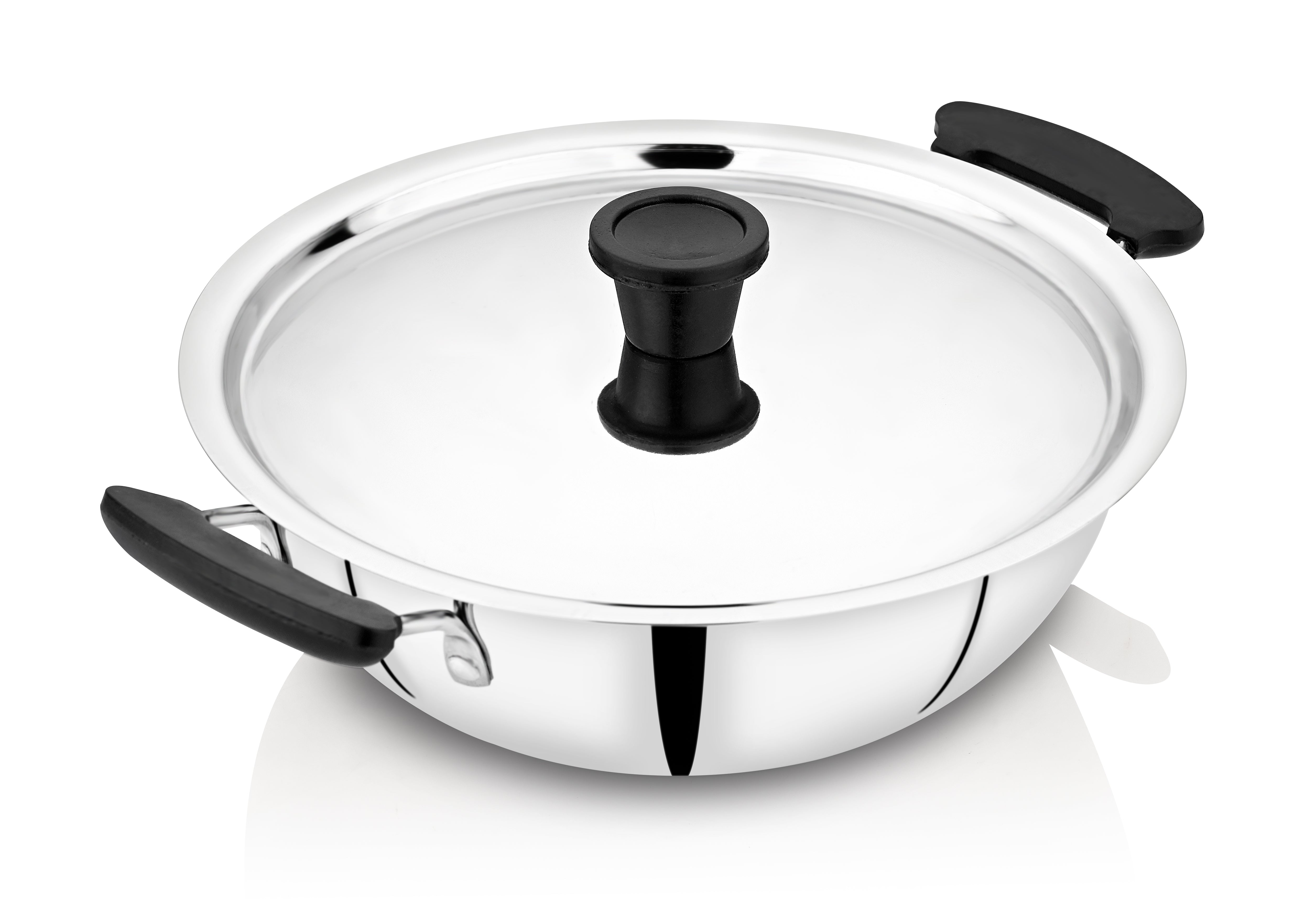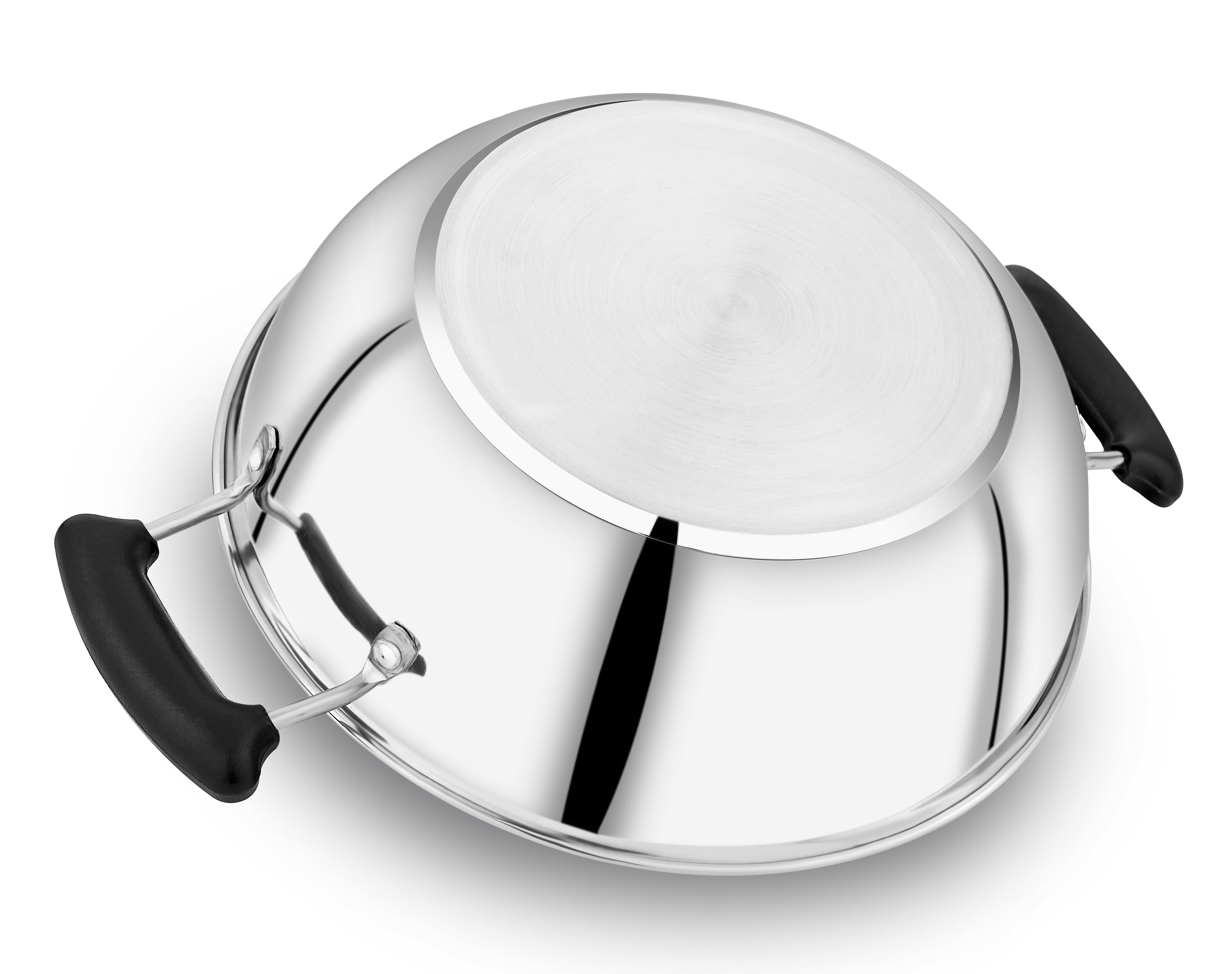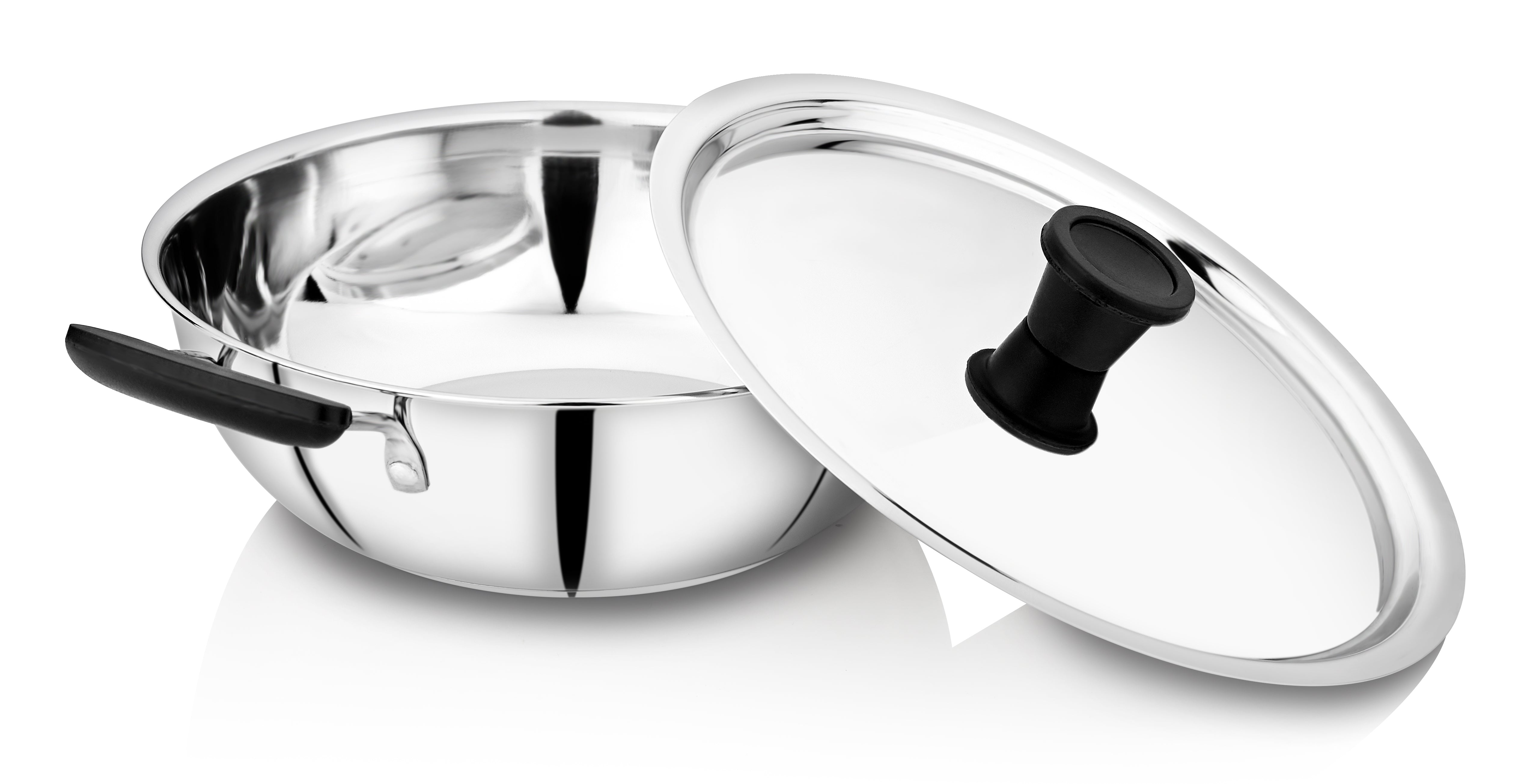 Essential Stainless Steel Kadhai | Sandwich Bottom, Stay-Cool Handles & Lid | Induction & Gas Compatible