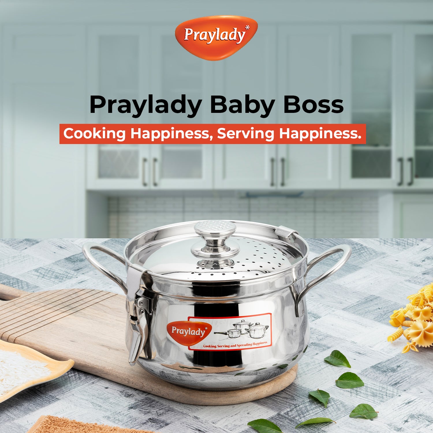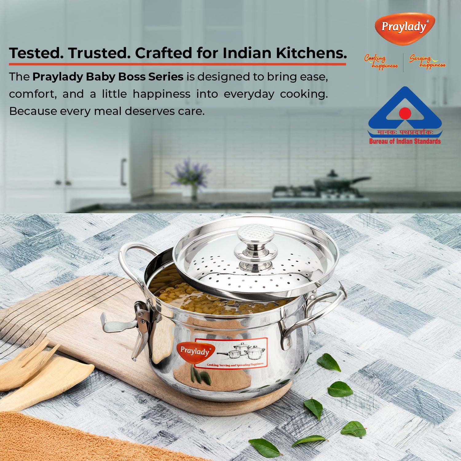 Baby Boss 3L Stainless Steel Strainer Pot with Lock – 18 cm Pasta, Rice & Vegetable Cooking Pot with Induction Base
