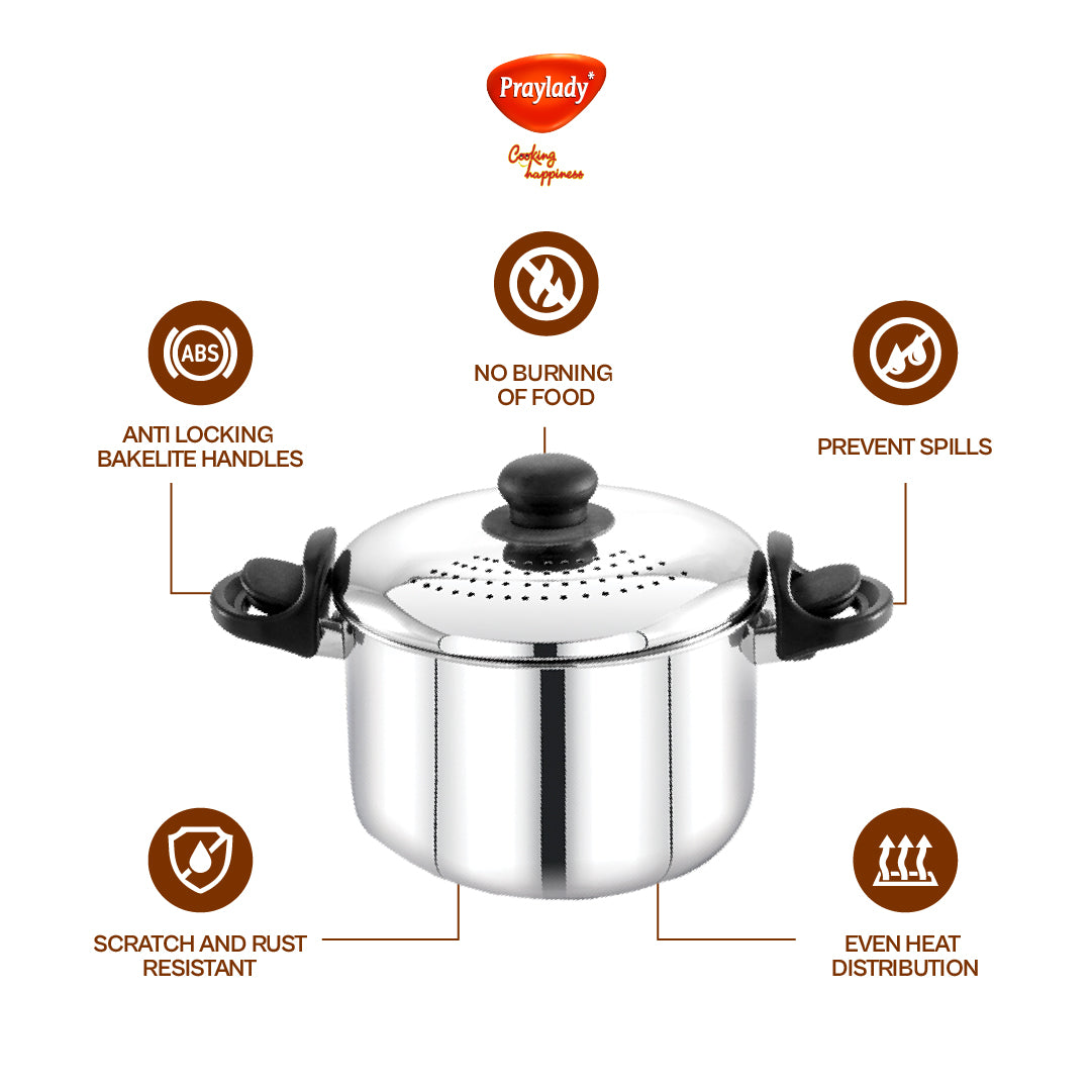 Cleanup is simple thanks to dishwasher-safe construction, and your purchase is backed by a 2-year warranty for added peace of mind. Sleek, sturdy, and built for real-life kitchens, the Praylady Strainer Pot with a full stainless steel lid delivers unmatched utility in a compact footprint.