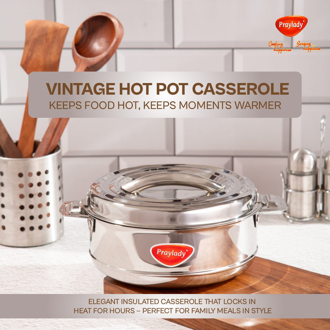 Praylady Vintage Hotpot – Premium Stainless Steel Insulated Casserole for Hot & Cold Meals (1L–5L)